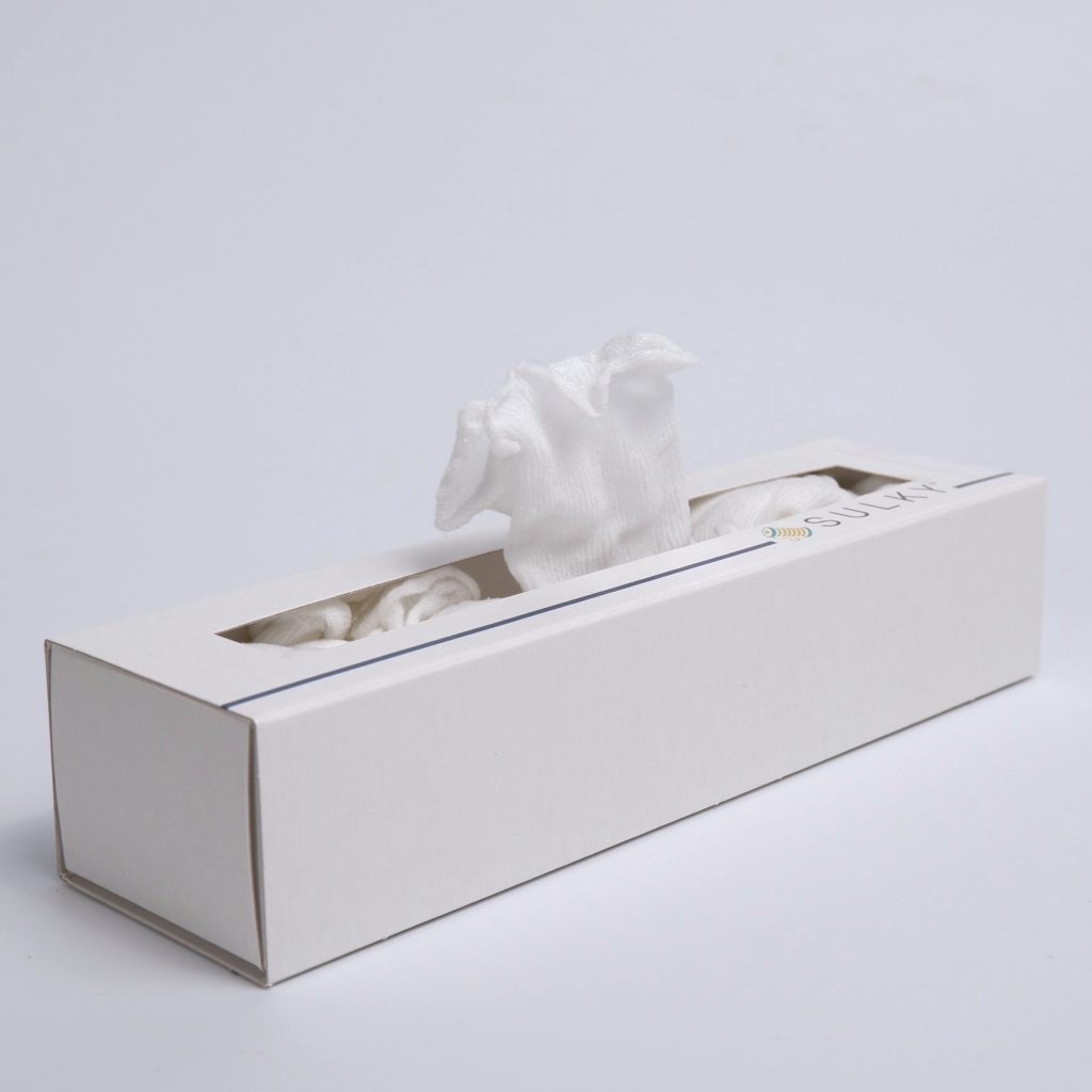 Die Strümpfe werden pro Sorte in Boxen á 50 Stück angeboten und sind über Jahre verwendbar.